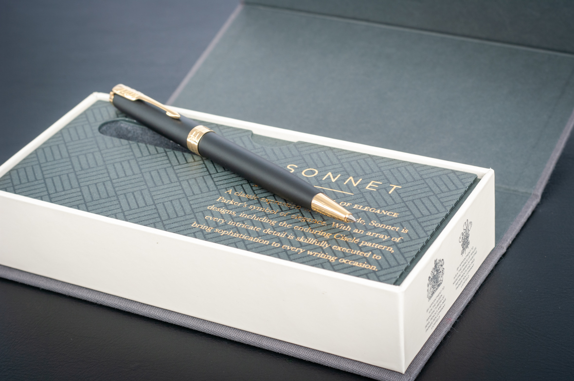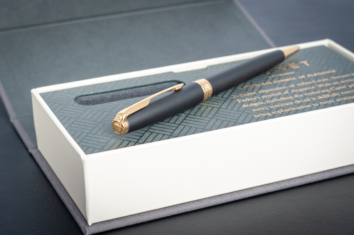 Шариковая ручка Parker Sonnet Matte Black GT от официального дилера Parker в Санкт-Петербурге. Вы можете дополнительно заказать гравировку, которая подчеркнет Вашу оригинальность и придаст памятность статусному подарку. Все ручки Паркер поставляются в фирменном футляре.
